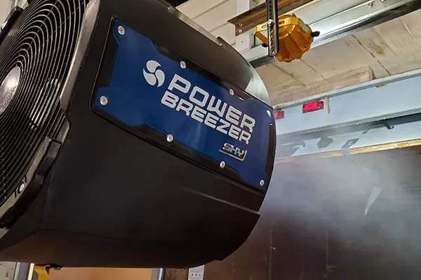 One solution to managing the suffocating environment of loading docks are the innovative, immensely powerful Power Breezer fans. Most specifically, the Power Breezer SKY was made to drop temperatures and provide superior comfort and cooling in environments such as loading docks. These fans are mounted above a door threshold, typically; hence the name. From this position, they generate robust temperature reduction through atomized evaporative cooling. Then they propel this cool air with a high-powered fan to keep the entire space cool with ease and great power.
